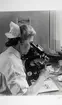 "Vid mikroskopet. Syster Elin räknar blodkroppar". (Lasarettet). Från utställningen "Falköping i bild" 1952.