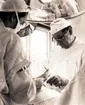 "Operationen går vidare". Doktor Sam Pettersson opererar, assisterad av doktor Luttrup. Från utställningen "Falköping i bild" 1952.