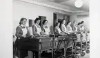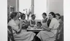 "Personalens 11-kaffe" (Lasarettet). Systrarna Viviann och Saga med sina medhjälpare. Från utställningen "Falköping i bild" 1952.