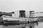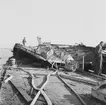 Fartyget liggande vid Hammarbyvarvet under nedskrotning 14/1 1961