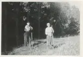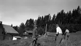 "Sandbergs" Sagered 3:3 1940-tal. Bildtext ur album: "Anders (1873-1951) och Hilda Sandberg (1887-1973) på lieslåtter under Kalvhagen."