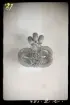 Kvinna med kort, vågig frisyr. Text med blyerts på baksidan: Hygieniska avd. Frisyrer (fru M Oldenburg, Arden)"