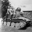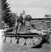 Korpral Gert Thunholm P 3 vid strv m/42 på P 4 garageplan 1948. Milregnr: 672