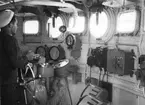 FC Örlkn Bengt Pauli i styrhytten på Minfartyget Älvsborg under uppvisning av fartyget för Chilenska officerare 1996