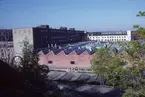 På en podium står en munter skara höga militärer och politiker som håller tal under sjösättningen av T 141. I bakgrunden syns Wasaskjulet och Lindholmsbron.