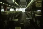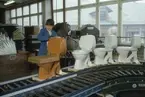 Chefen för Karlskronavarvet håller ett tal under en middag efter sjösättningen av T136 Västervik. Stående är Karlskronavarvets VD Johan Söderman, till höger sitter marinchefen, viceamiral Bengt Lundvall.