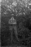 Kabinettsfotografi - höns vid ekonomibyggnad, Fäcklinge, Tierps socken, Uppland