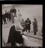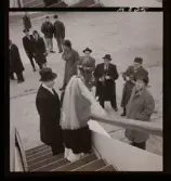 "1680 Bröllop i luften med Abas DC-4 ""Sunnan"" till Paris " Ett brudpar går nedför trappan till ett flygplan. Nedanför väntar fotografer.