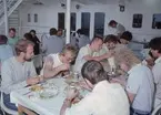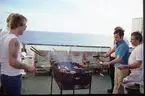 En grekisk besättningsmedlem med mobiltelefon fotograferar en kollega.