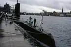 Befälhavare och maskinist med "räddad" annan besättningsmedlem i torrdräkt.