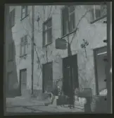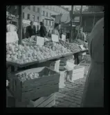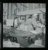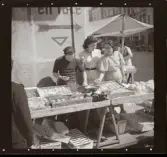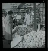 568 F. Stieg Trenter, Torremolinos. Försäljning vid dörren. En kvinna köper frukter av en man.