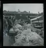 1717/L Istanbul allmänt. Gatuförsäljare. En man säljer vattenmeloner från flaket på en hästdragen vagn.