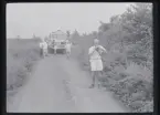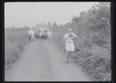 Tunnbindare Knut Håkansson med sonen Roland framför en lastbil lastad med smördrittlar.