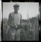 507 D Ultuna. En man inspekterar odlingar i ett växhus.