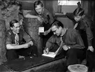 "Wasakåren i Upsala har jubilerat" - Lars Engvall, Rickard Ringmar, Stig Holm och Nils-Olov Nilsson i "Korpens patrullrum", KFUM-borgen, Uppsala mars 1942