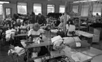 Klänningsfabrik 23 november 1966 I en klänningsfabrik sitter sömmerskor och syr vid symaskiner.