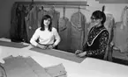 Konfektionsindustri 6 april 1968 På Saléns konfektion AB sitter två sömmerskor och syr. Bakom dem håller en kvinna på och hänger upp ett plagg på en klädgalje.