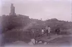 Skioptikonbild med motiv från utanför stadsmuren i Dinkelsbülh. Bilden har förvarats i kartong märkt: Höstresan 1911. Dinkelsbühl 9. IV.