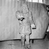 En man i arbete med inmatning av träråvara. Bilden ingår i serie från produktion och interiör på pappersindustrin Papyrus, 1980-tal.