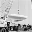 Skåne, Torekov, Yttre hamnen, Brygga för småbåtar med skånesnipor och en plattbottning. Juni 1962