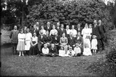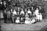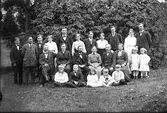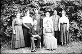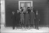 Sittande från vänster ?, Anna-Greta Ersdotter, Barbro Olsson, ?, ?, ?, ?, Jenny Olssson, Englina Olsson. Stående från vänster ?, Oskar Larsson, Albert Olsson, Otto Olsson, ?, ?, Ann Maria Larsson och Per Erik Eriksson (Josefs mor och far).