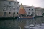 Tryckt text på kortet: "Marstrand. Hamngatan i fisketid."