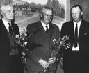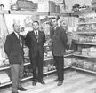 Per-Martin Hamberg och byggmästare Herman Henriksson lyssnar till en rolig historia som byfogden Ragnar Johansson, Utterbyn, berättar. Herman Henriksson Västanvik sitter till vänster. (Enligt kommentar från digitaltmuseum.se)