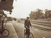 Affärsskyltar: Andersson & forsbergs Eftr, Nya Urmakeri- och Guldsmedsaffären, Emil Larssons Speceriaffär, Janssons Åkeri m fl.