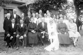 Exteriör. Bröllopssällskap framför stort trähus med glasveranda. Gullspångssamlingen. Bilder från Gullspång med omnejd.