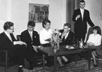 Trivselträffens "Cabaré på tre" Bengt Jonsson och Marit Berglund, Torsby och Arne Karlsson, Persberg studerar affisch o. flygblad för turnén.