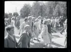 "Värnpliktiga som av anförvanter och vänner ledsagas ett stycke på väg då de lämna N. Tagil för att fullgöra sin värnplikt"