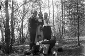 Två unga kvinnor i folkdräkt och två unga män