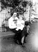 Exteriör. Dam med barn i knäet, misslyckat foto. Fotograf: Ellen Kock? Axel Lundbäck m.fl. Gullspångssamlingen. Bilder från Gullspång med omnejd.