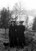 Enligt fotografens noteringar: "En trio i snön." Plats: Kasen Datum: 18 Februari 1900 Tid: Kl 2.15 em. Ljus: Snöyra Bländare: No 1 Objektiv: Svenska Express Exponering: Hastighet 3 Framkallning: Hydrochinon, Eikonogén Anmärkningar: "Plåten tunn."