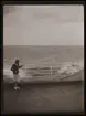 "Arvid Florman fotograferar sin hustru Edla, född Bergwall, på stranden mellan Malmö och Limhamn"