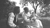 Skara. Aina och Claes Andersson på Qvänsels bakgård. Claes f. 19/8 1951.