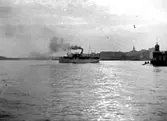 Båtens namn: BORGHOLM En "Sveakasse" enligt Dahlberg, S-et för Sveabolaget syns på skorstenen. Den forslade bl a studerande, från Stockholm till Kalmar - kortet från Stockholms municipalsamhälle.