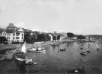 Tryckt text på kortet: "Hamnparti. Malmön". "Förlag: E. Leikness, Bohus Malmön". Noterat på kortet: "8-9 sept. 1951".