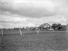 Flygfoto över samhället Målilla, med järnvägsnätet i centrum.