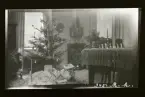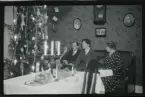 Kvinnor med halmbockar tillverkade för försäljning på Skansens julmarknad. Skansen, Stockholm.