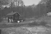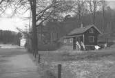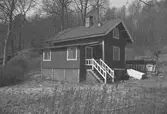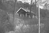 "Gröne backe" på Rådavägen 7, Sjövalla 1:1, Stensjön. Denna bruna träpanelsvilla låg vackert belägen intill Rådavägen i den gröna backen norr om Stensjön. Villan revs 1991. Bilden är tagen 1991.