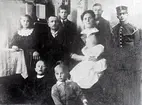 Bostadshus, släktgrupp 12 personer framför huset, barndop. Sven Bengtsson