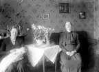 Rumsinteriör, en kvinna och en baby, barndop. Nyström
