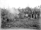 FYRA MÄN SOM SÅGAT NER EN STOR GRAN. I MITTEN GUSTAV EMIL OCH ANTON EMIL FRÅN UNDENÄS.