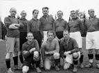 "Luftskyddets dag. Stort intresse bland Upsalaborna" - fotbollslag med "forna fotbollsstjärnor" - Studenternas Idrottsplats, Kronåsen, Uppsala oktober 1942