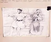 "Kapten vid Svea lifgarde och major i armén, född 1822 död 1895". Adam Reuterskiöld och en kvinna. På Näsbyholm 1845. Blyertsteckning av Fritz von Dardel, 1845