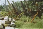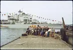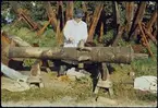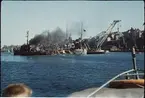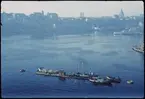 Skulpturer nyss bärgade från Vasa, här ombord på dykarflotten.