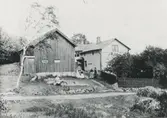 Hallen, nuvarande Hallavägen 7, 1950-tal. Sommarstuga som tillhörde Gustav och Märta Jinfäldt. På fotot Märtas föräldrar Otto och Gerda Andersson, Majorna/Masthugget som hade sommarstuga bredvid (Hallav. 9) och övriga är släktingar till Otto Andersson.
