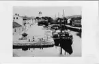 Text på kortet: "Gustafsberg". "Gustafsberg vid Uddevalla är inte endast Sveriges äldsta badort utan dess ryktbarhet härleder sig i minst lika grad från den för tiden unika internatskolan, som år 1776 där inledde sin verksamhet till gagn för "Bohusläns fattiga pojkar". Gustafsberg hette före 1774 Baggetofta och ägdes av skeppsredaren och handelsmannen Anders Knape Hansson och hans hustru Catharina, född Hegardt. Makarna var barnlösa och testamenterade hela sin betydande egendom till en barnhusstiftelse. Konung Gustaf III stadsfäste donationsbestämmelserna och förlänade platsen namnet Gustafsberg. Barnhusskolan började sin verksamhet 1776 och meddelade undervisning i latin, moderna språk, matematik o.s.v. samt även musik. Såsom internatskola med egna lärare upphölls verksamheten till 1924. Numera är den förvandlad till skolhem, och eleverna undervisas i Uddevalla läroverk. På 1720-talet upptäcktes Baggetofta hälsobrunn, och den besöktes 1746 av Carl von Linné, som därom berättar i sin Wästgöta-resa. Såsom badort anses Gustafsberg kunna räkna sina anor från 1774, och därmed är den vårt lands äldsta. Sin glanstid upplevde badorten under förra hälften av 1800-talet, då kungligheter, adel och andra framstående kvinnor och män besökte Gustafsberg, och där drack hälsa ur surbrunnen. Efter att under många år ha legat gömd under badrestaurangens golv har brunnen nu gjorts tillgänglig, och idag kan man åter "dricka brunn" på Gustafsberg. Numera är den 200-åriga badorten livligt frekventerad. Den bjuder modern komfort i historisk mjljö och är en kostbar västkustens pärla, som skyddas inte endast av Barnhusdirektionen utan också av vårt lands högsta kulturvårdande myndigheter".