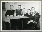 Gengas aggregat till bussar fylls på med träkol ur säckar vid Hornsbergsgaraget. I bakgrunden kvarteren Paradiset och Lyckan.